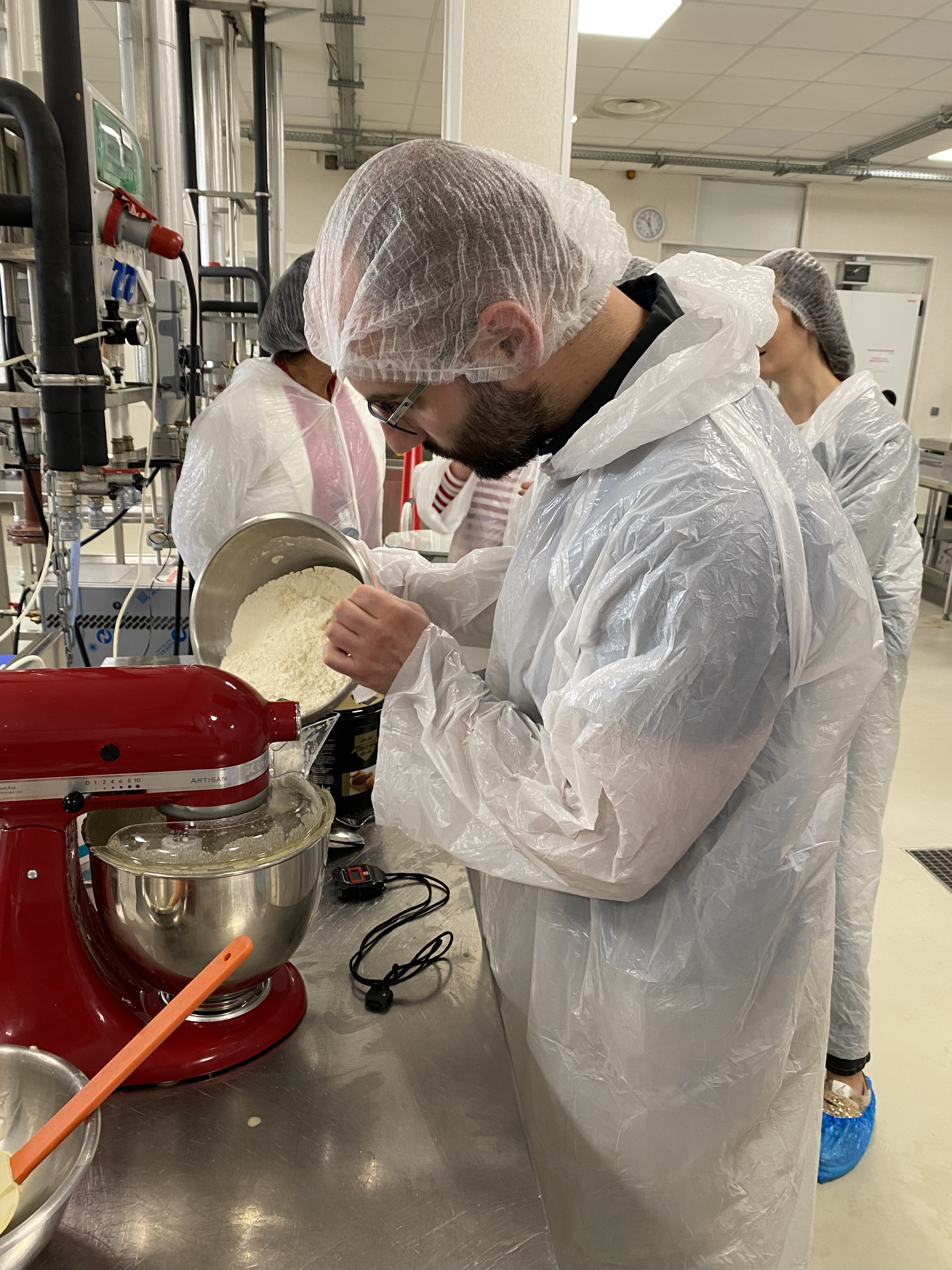 Matinée consacrée à la pratique ! Nos apprentis pâtissiers se sont attelés à la réalisation de deux recettes de quatre-quarts (l’une au beurre, l’autre à l’huile), suivie d’analyses physico-chimiques des produits. Un grand merci à Arnaud ASTA-RICHARD, responsable technique de la halle technologique, pour son accueil et son accompagnement.